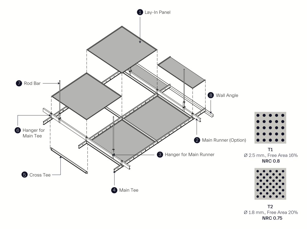 Ø 2.5 mm, 16% Free Area, Perforated T1 / NRC : 0.8