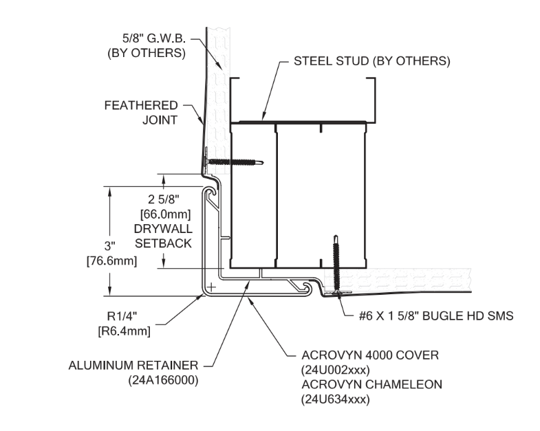 Continuous aluminum retainer for 5/8” (15.9mm) drywall