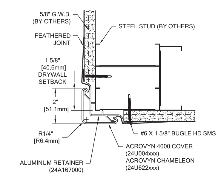 Continuous aluminum retainer for 5/8” (15.9mm) drywall