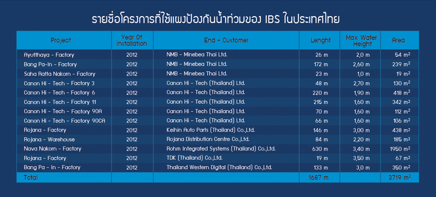 แผงป้องกันน้ำท่วม IBS ผ่านการทดสอบโดยนำไปใช้งานจริงที่ริมแม่น้ำดานูบประเทศออสเตรีย พบว่าสามารถป้องกันน้ำท่วมได้จริง สามารถป้องกันทรัพย์สินของรัฐบาล และประชาชนที่อยู่ใกล้แม่น้ำให้ปลอดภัยจากน้ำท่วม นอกจากนี้ยังรักษาทัศนียภาพของริมแม่น้ำและพื้นที่รอบ ๆ ให้ยังคงความสวยงามไว้เช่นเดิม